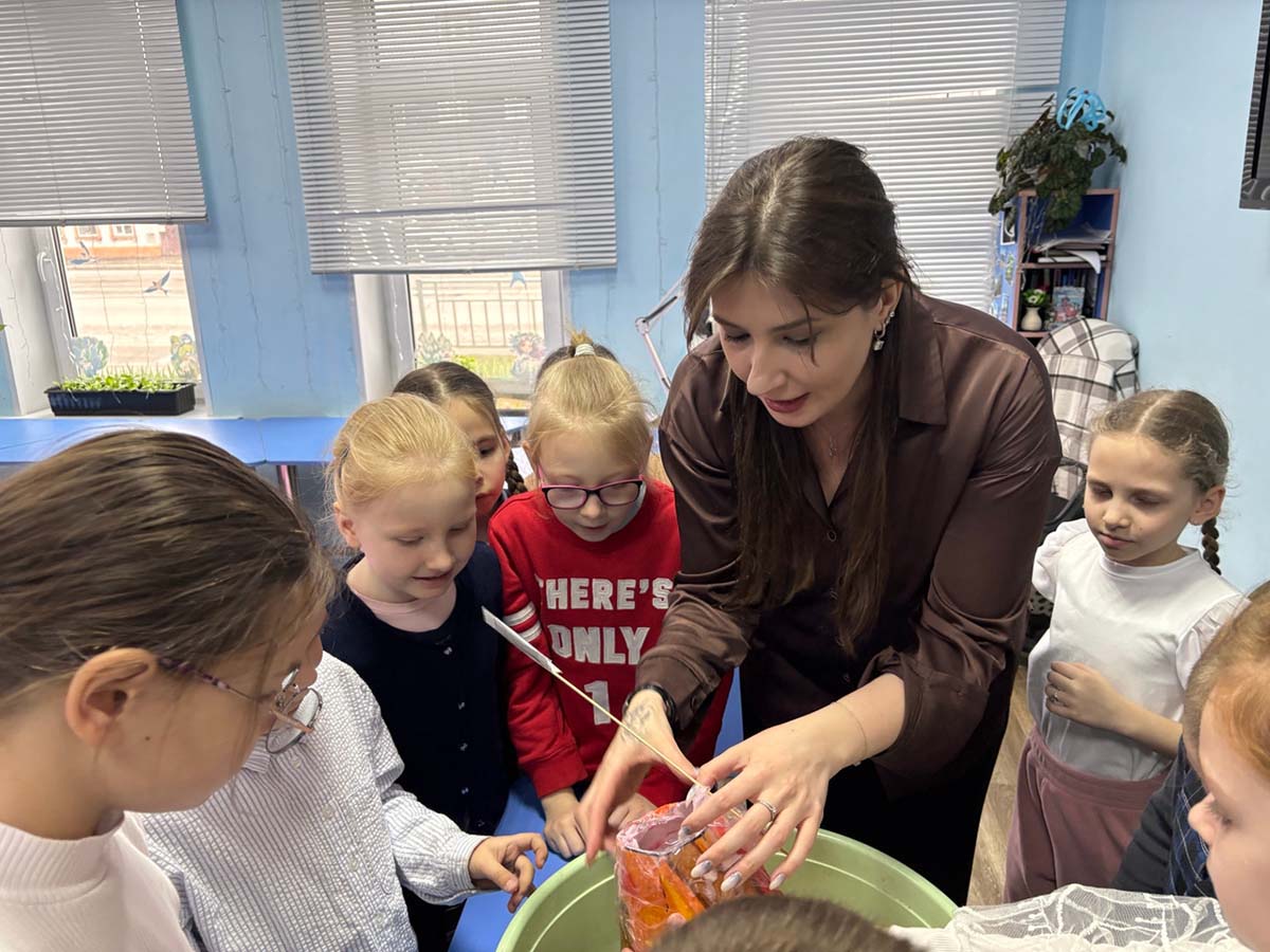 Ребята узнали о первых «космонавтах» — животных, которые проложили путь человеку к звёздам: от крошечной мухи до храброго шимпанзе Хэма. Дети с удивлением слушали, как учёные шаг за шагом проверяли возможность космических полётов.