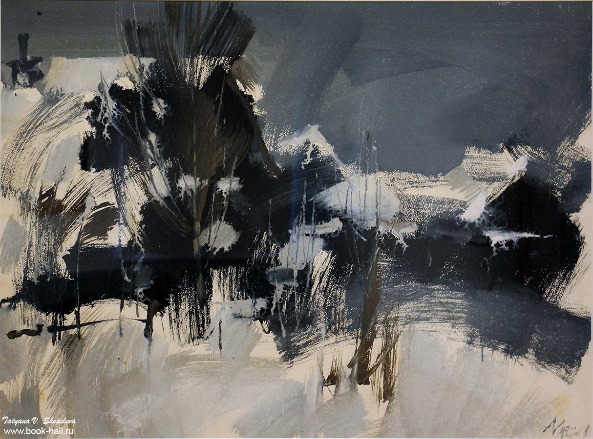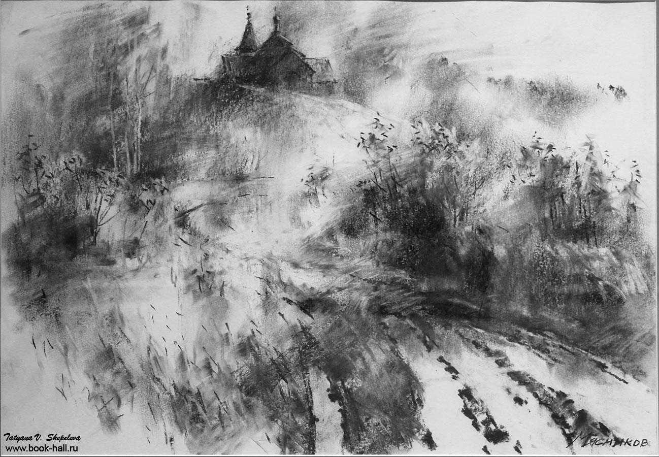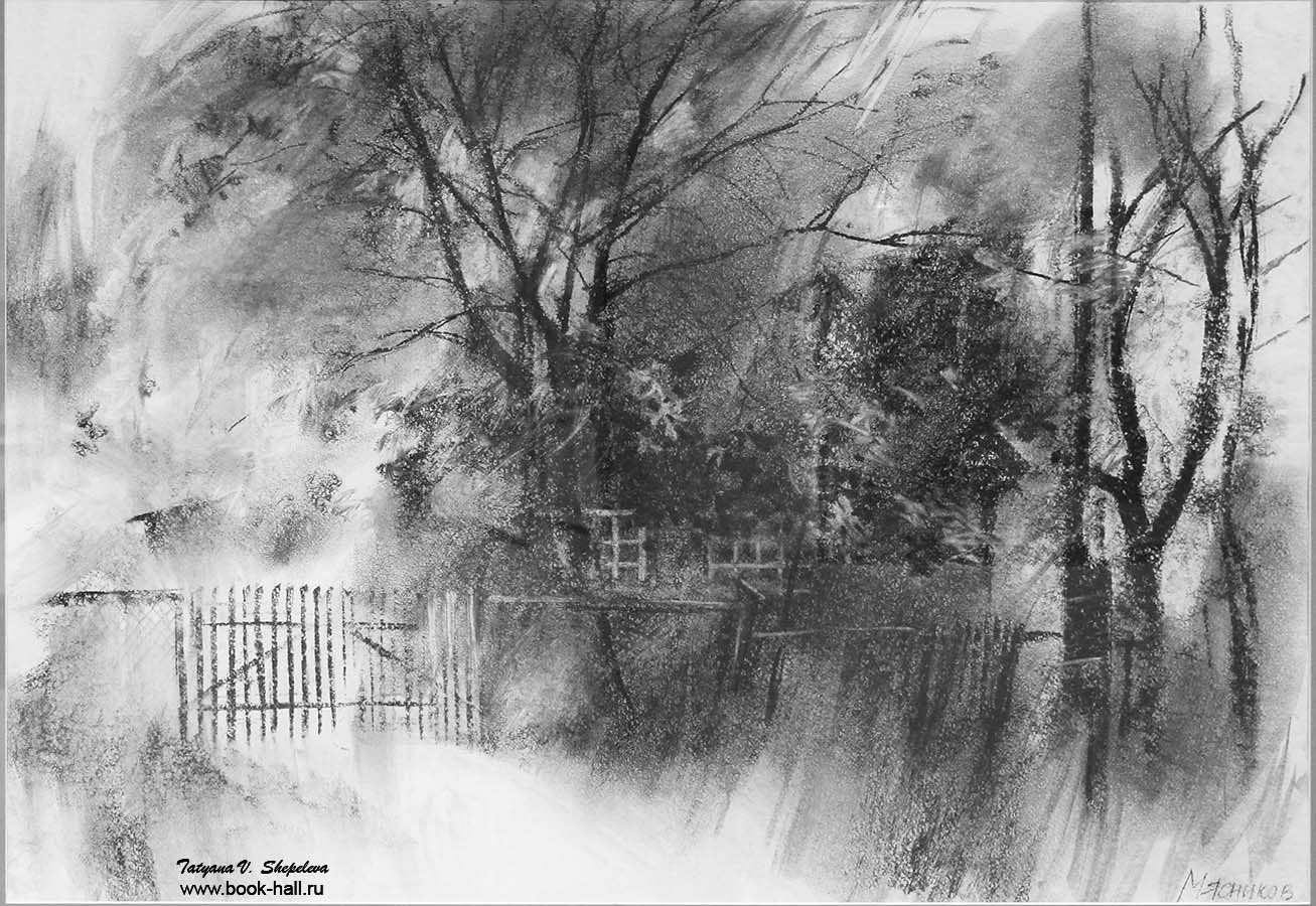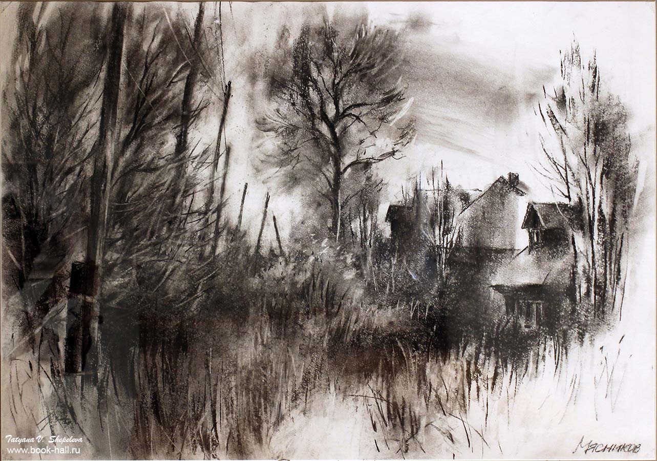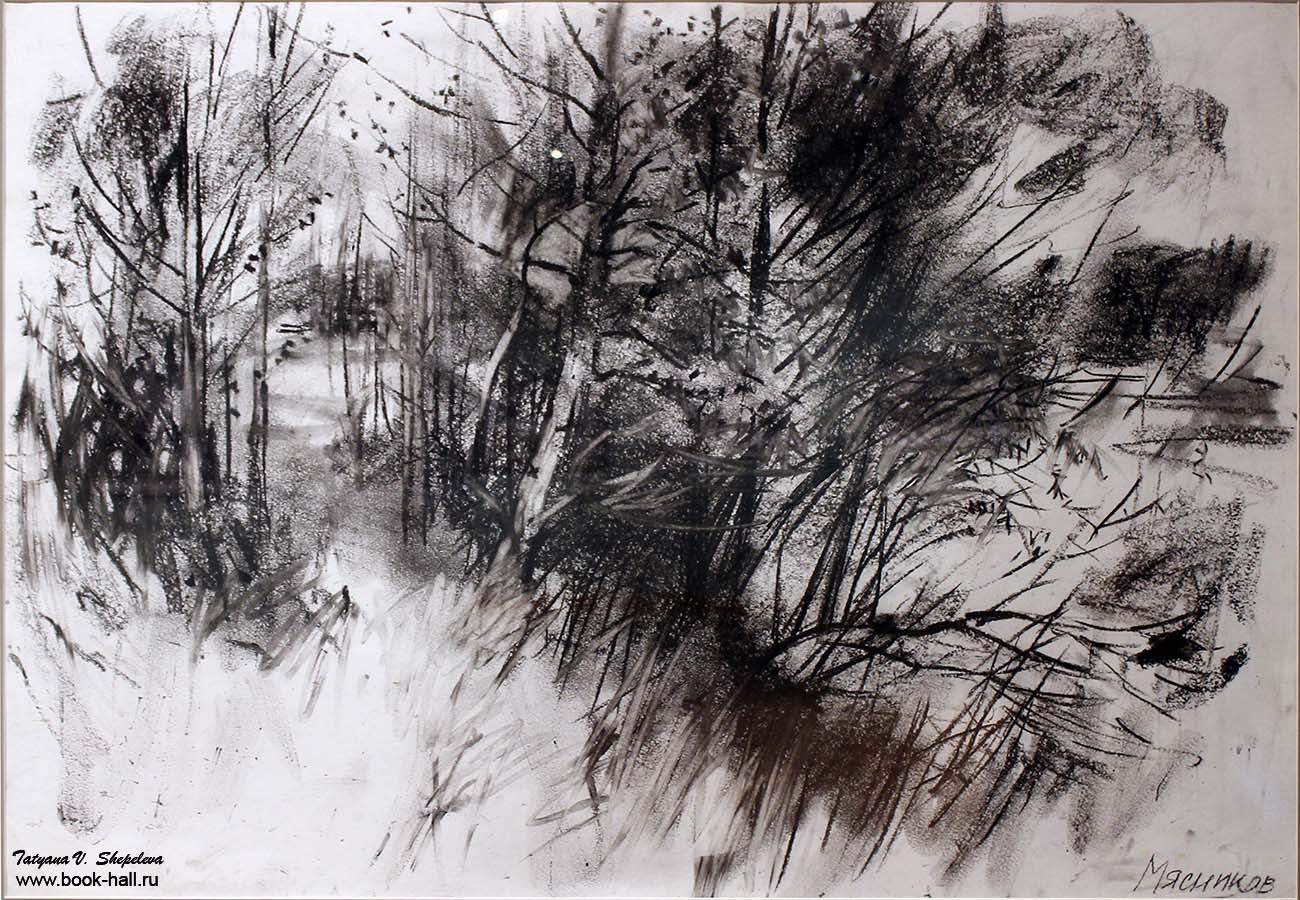 Работа с натуры определяет особенности художественного языка автора и позволяет ему добиться точности в передаче атмосферных явлений. Живя за городом, мастер не упускает возможности пленэра в любое время. По его признанию, работать в мороз комфортнее, чем в жару. Зима — одно из любимых времен года художника. Как истинный график, он восхищается ее контрастами. Зима Алексея Мясникова выразительна независимо от того, в какой технике она воплотилась на листе бумаги.