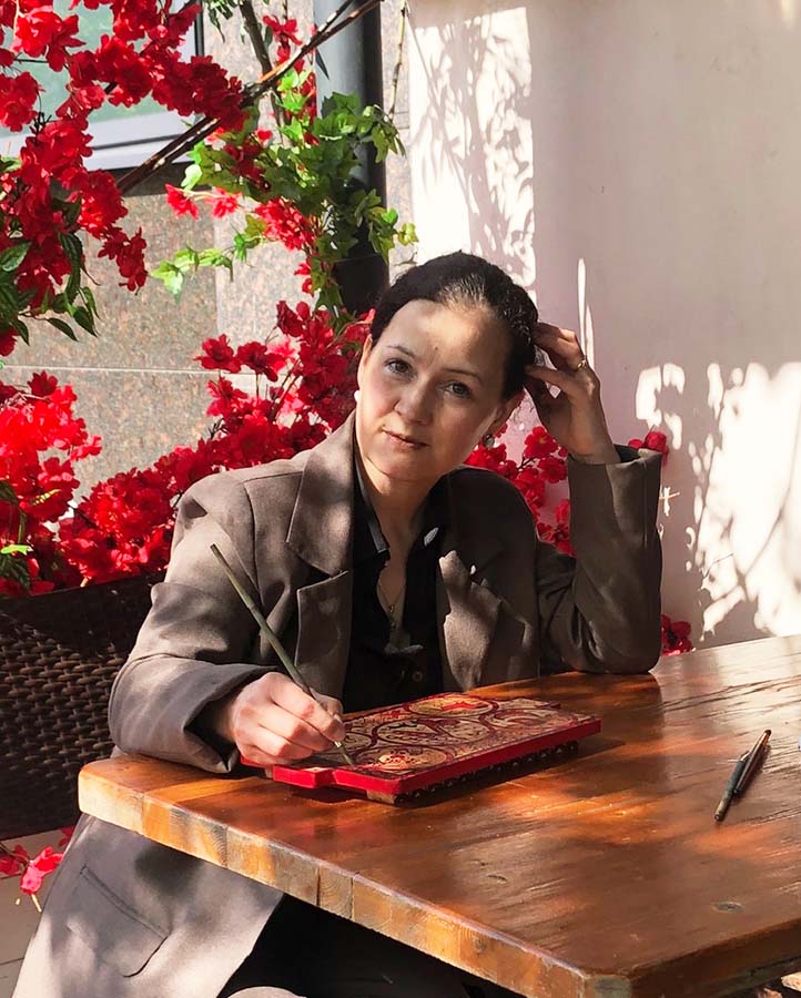 «Творчество даётся человеку от Бога. Художники особенно близки к нему. Если посмотреть историю возникновения росписи, видно, что она берёт начало от иконописцев и переписчиков книг. Для меня творчество — это отдушина, возможность обрести гармонию».