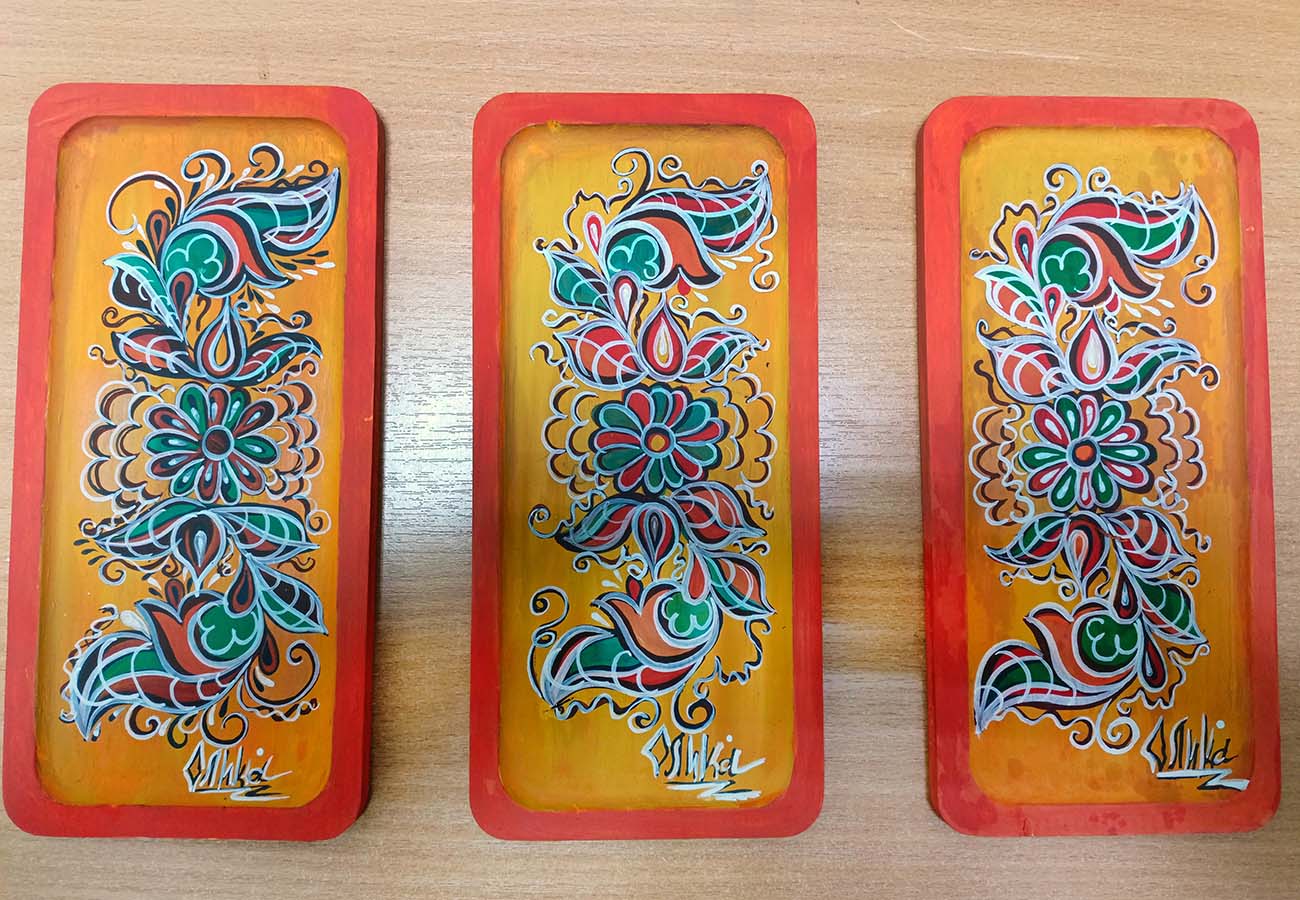 «Форма всегда определяет содержание. Когда я приобретаю вещь, она лежит 2-3 дня. В это время в голове формируется образ будущей росписи. Иногда бывает наоборот — вижу предмет и сразу представляю, как он будет выглядеть. Многое зависит от вдохновения. Есть работы, которые создаются на одном дыхании, а есть те, над которыми я могу работать месяц, постоянно что-то добавляя и изменяя».