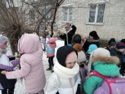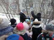 Акция продолжилась на улице около библиотеки. Дети раскладывали в кормушки для птиц семена подсолнечника, тыквы, зёрна пшеницы и белый хлеб. Возвращаясь в школу, ребята с радостью увидели, как к кормушкам слетаются стайки синичек и воробьёв.
