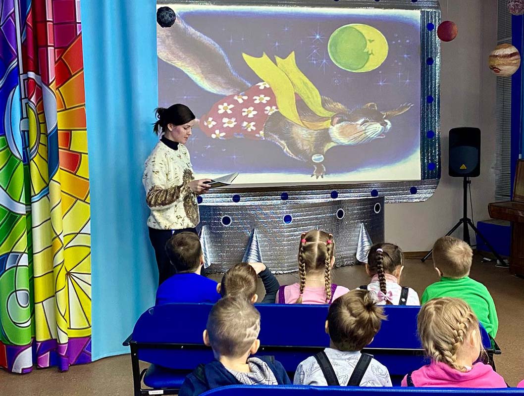 Библиотекарь рассказала о замечательных книгах Сладкова. Дети с интересом слушали истории о зверятах, живущих в лесу, о зимних радостях и увлекательных приключениях. Им очень понравилось, как Николай Иванович умело описывал природу и повадки животных, и каждому захотелось оказаться в тех самых снежных лесах.