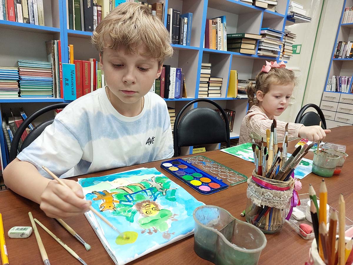 ... знакомились на творческих занятиях студии «Муравьишка» юные художники библиотеки им. В. Дубинина. Весь октябрь 2025 года малыши вместе с библиотекарем Ириной Викторовной Катаевой изучали фольклор и персонажей славянской мифологии. И Змей Горыныч, и Водяной, и даже Илья Муромец уже знакомы детям по художественным и мультипликационным фильмам. Увидеть их с художественной стороны оказалось делом непростым.