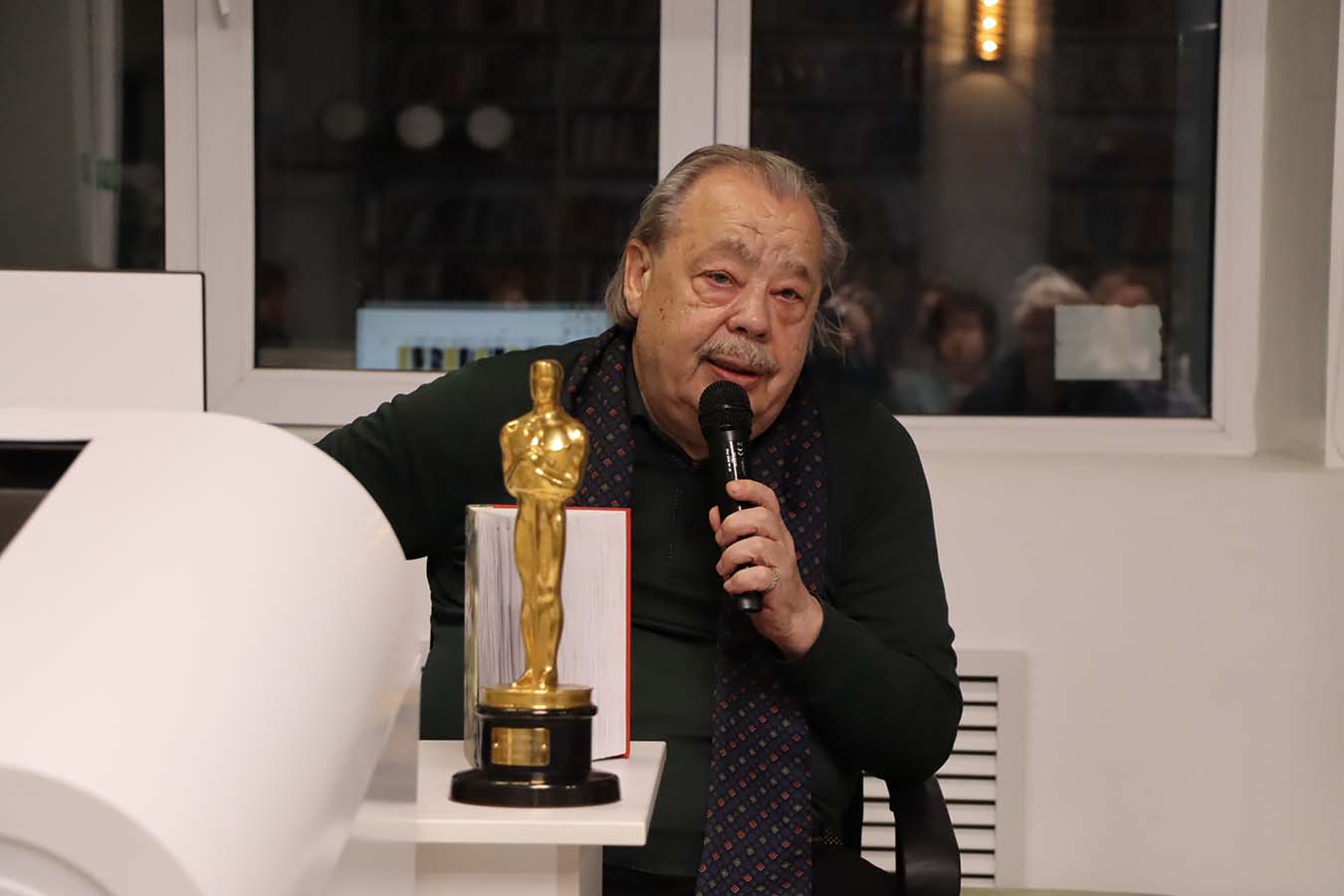 Рассказом о новом романе выступление Владимира Седова не ограничилось. Наших завсегдатаев очень заинтересовала статуэтка, стоявшая на столике рядом с книгами писателя. Да-да, это самый настоящий голливудский «Оскар»! Владимир Иванович дружит с режиссёром Никитой Михалковым и в своё время спродюсировал его нашумевший фильм «Утомлённые солнцем». Как известно, если фильм получает премию «Оскар», то приз достаётся именно продюсеру — за режиссуру награждают в отдельной номинации.