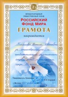 Заведующая детской библиотекой им. А. Гайдара Пинякова Наталья Ивановна награждена Грамотой Российского фонда мира «За миротворческую и просветительскую деятельность среди детей и молодежи города Нижнего Новгорода» в рамках программы «Венок дружбы».