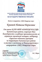 Всероссийская политическая партия «Единая Россия», местное отделение города Нижнего Новгорода выражает благодарность и глубокую признательность заведующей библиотекой им. А. Грина Краевой Наталье Борисовне за активную жизненную позицию, поддержку социально-значимых проектов на территории Канавинского района и участие в месячнике по благоустройству в микрорайоне «ЭЖК, Мещерское озеро».