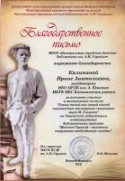 Коллектив детской библиотеки им. К. Симонова и лично Марина Юрьевна Федорова награждены благодарственным письмом Администрации МБОУ «Школа № 75», коллектива родителей и классного руководителя 4Б класса за неутомимую плодотворную деятельность, творческую самоотдачу и высокий профессионализм.