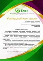 Сотрудник филиала-библиотеки им. А.Н. Островского Титова Галина Петровна отмечена благодарственным письмом Нижегородской региональной общественной организации поддержки детей и молодежи «Верас» за многолетнее плодотворное сотрудничество.