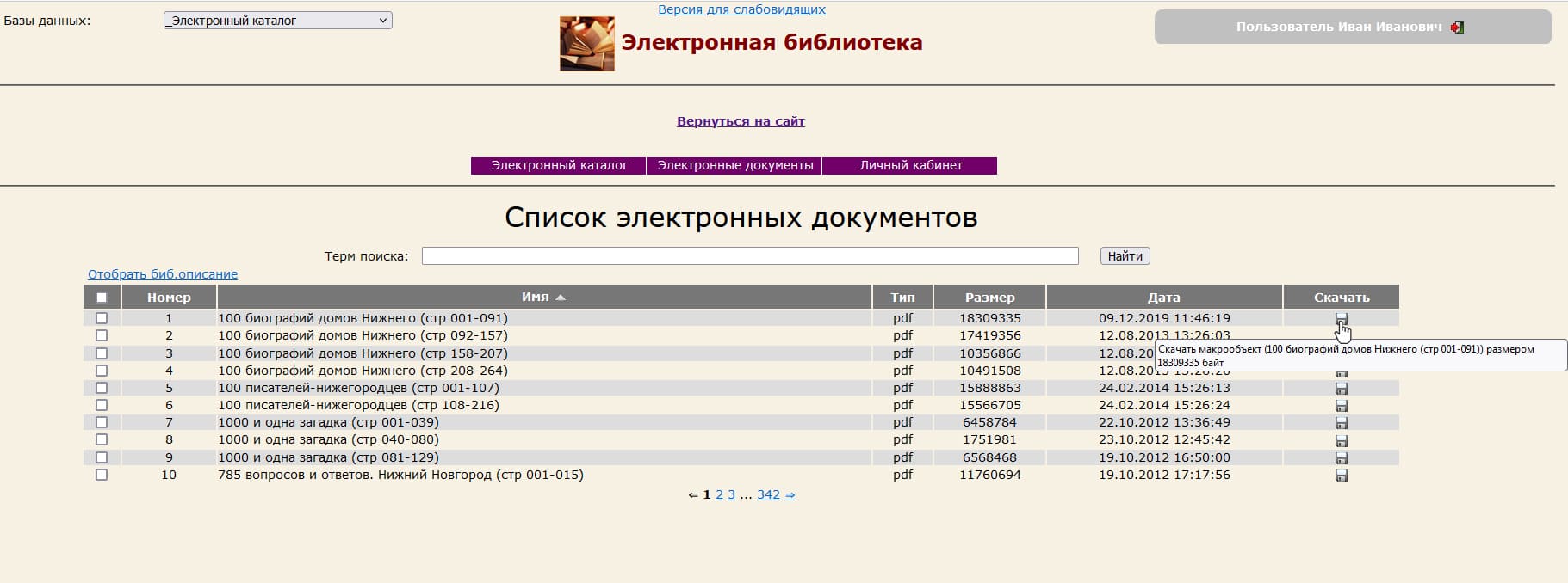 Далее выберите пункт меню Электронные документы. Вы получите весь список оцифрованных документов.