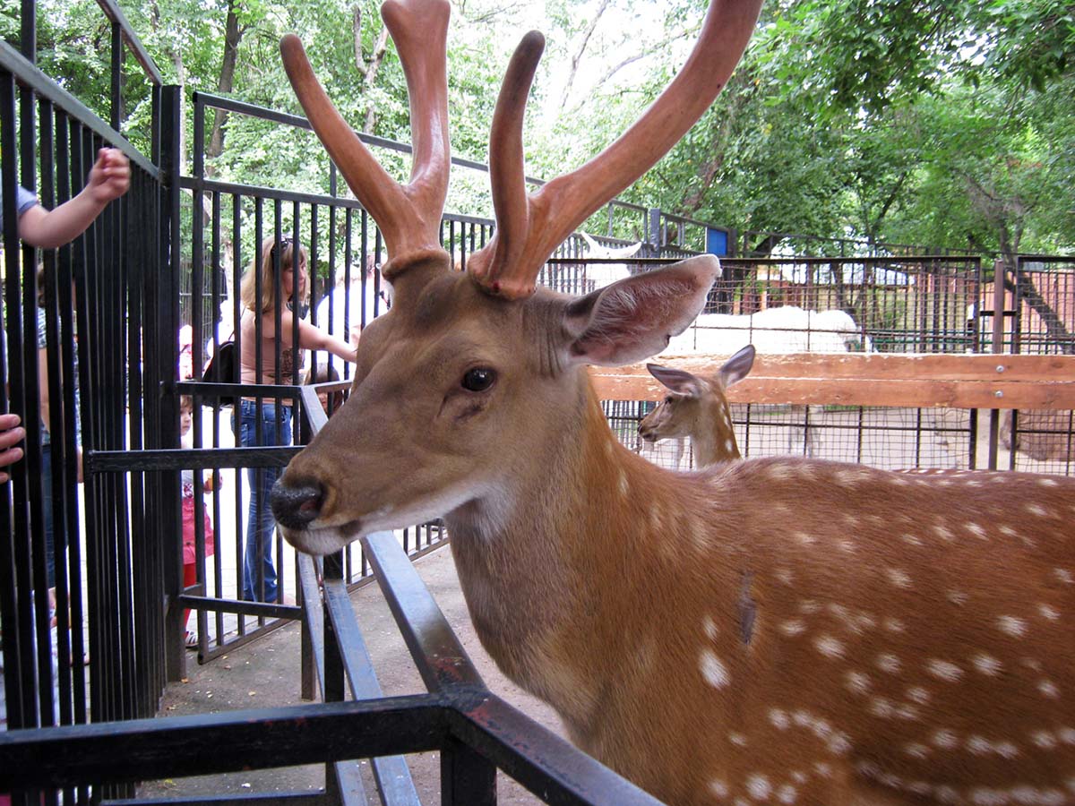 Красавец пятнистый олень. Его даже можно потрогать! Рога такие приятные на ощупь...