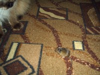 Это был единственный раз, когда живая мышь появилась в их квартире, но Муся сразу правильно сориентировалась: поймала мышонка и принялась играть им. Маленький зверек тоже не растерялся - притворился мертвым, чем вызвал глубочайшее удивление новоиспеченной охотницы. Мыша пришлось отобрать, как Муся ни ворчала и ни сопротивлялась...