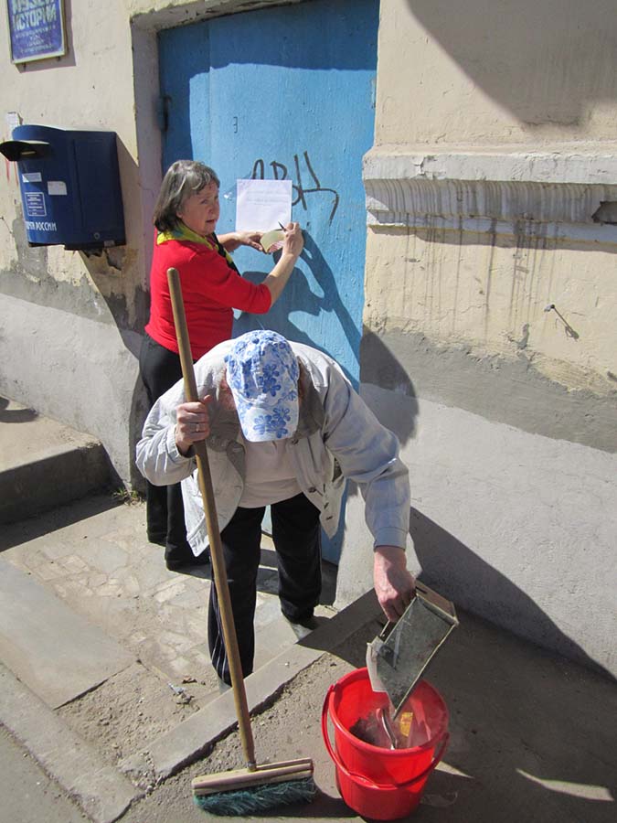 Галина Васильевна Яковлева, читательница ЦРБ им. Ф.М. Достоевского и активная участница клуба "Радость", поделилась своими фотонаблюдениями за проходящим в микрорайоне Сортировочный месячником по благоустройству. И стар, и млад! - так можно было бы назвать ее фотоотчет. На фото - клуб "Радость" и учащиеся школы № 168 ударно трудятся на субботнике.