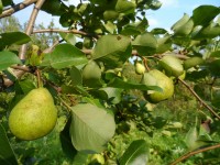 Вот такая маленькая груша - совсем еще молоденькая - растет в саду у Ларисы. Но уже в этом году на ней появился первый полноценный плод. А вторая, куда взрослее и сильнее, плодов не дала, зато вдруг повторно расцвела в августе! И маленькая виноградная лоза, пока еще юная и слабая, быть может, порадует в ближайшие годы своих хозяев пусть небольшим, но урожаем - в нашем климате последнее время это стало вполне возможным.