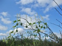 На самом деле лиана с зелеными плодами, напоминающими покрытые колючками огурцы, - эхиноцистис. Принадлежит растение семейству Тыквенных, это единственный вид рода Эхиноцистис. Среди растений, обитающих в нашем крае, эхиноцистису не занимать живучести. Тонкими усиками цепляется он за любую поверхность, поднимая листья и соцветия ближе к солнцу. Упорство и труд дают результат: ароматные нежные цветы эхиноцистиса возносятся на шестиметровую высоту, венчая кусты и даже деревья.