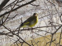 Зеленушка обыкновенная, или Carduelis chloris - птичка семейства вьюрковых, родственница щеглов и чижей. Страшно агрессивная и нахальная. Даже воробьи улетают от кормушки, если хоть одна из этих злюк подлетает за семечками. Клюет всех, кто оказывается поблизости, в том числе, и представителей своего рода. Боится только снегирей.