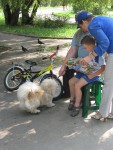 На прогулку в сквер пришли и родители с детьми, и бабушки, а некоторые привели и своих четвероногих домочадцев. Пока взрослые читали журналы, беседовали с А. Алешиным, делились мнением о мобильном читальном зале, детвора развлекалась на полную катушку: слишком долго пришлось ждать хорошей погоды! Поэтому, полистав журналы, познакомившись с играми, многие принялись просто бегать и играть с собакой - дети есть дети.