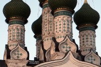 На следующих снимках – белокаменные палаты купца Афанасия Олисова и стоящая рядом, построенная на его средства Церковь Успения Божией Матери, что на Ильинской горе. Присмотритесь внимательно к первому снимку: на них видны четыре балахнинских изразца. А как нарядна церковь, богато декорированная такими изразцами!