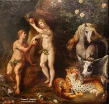 Сцена грехопадения – классический библейский сюжет. Думаю, нет смысла описывать ту идиллию, в которой пребывали Адам и Ева среди райских кущ, в окружении живущих в полной гармонии друг с другом животных и птиц, покуда не отведали по наущению змия-искусителя тех самых плодов с древа познания. Тяга к знаниям в этом библейском мифе преподносится как тяжкий грех, свершенный нашими прародителями, за который человечество и расплачивается на протяжении всей своей истории. Предлагаю оставить сюжет в покое, тем более, что написана картина была скорее всего на заказ. Куда интереснее, что создана она Яном Брейгелем Младшим в соавторстве с Франсом Ваутерсом, учеником самого Питера Пауля Рубенса. Художник этот очень мало знаком российским поклонникам живописи, поэтому позволю себе немного биографических сведений.