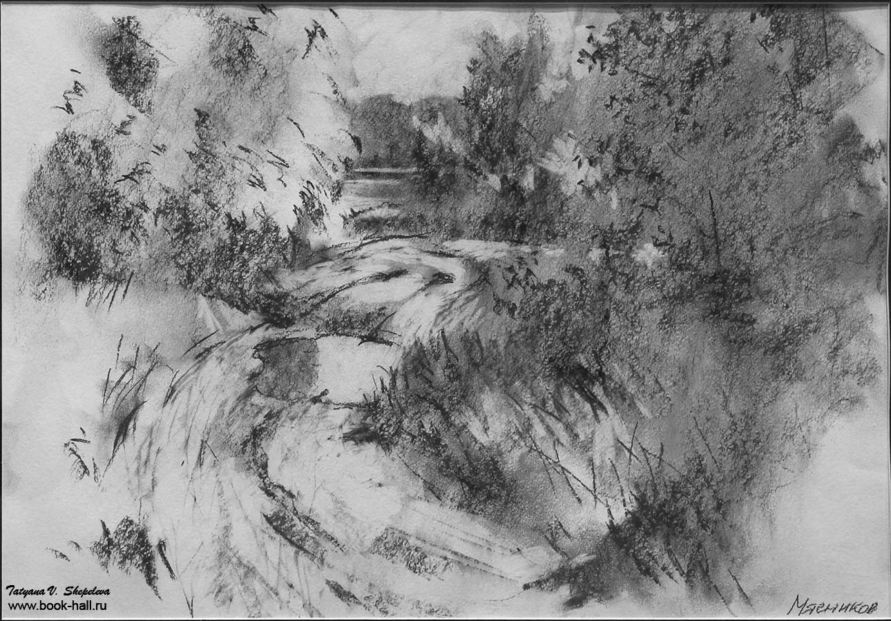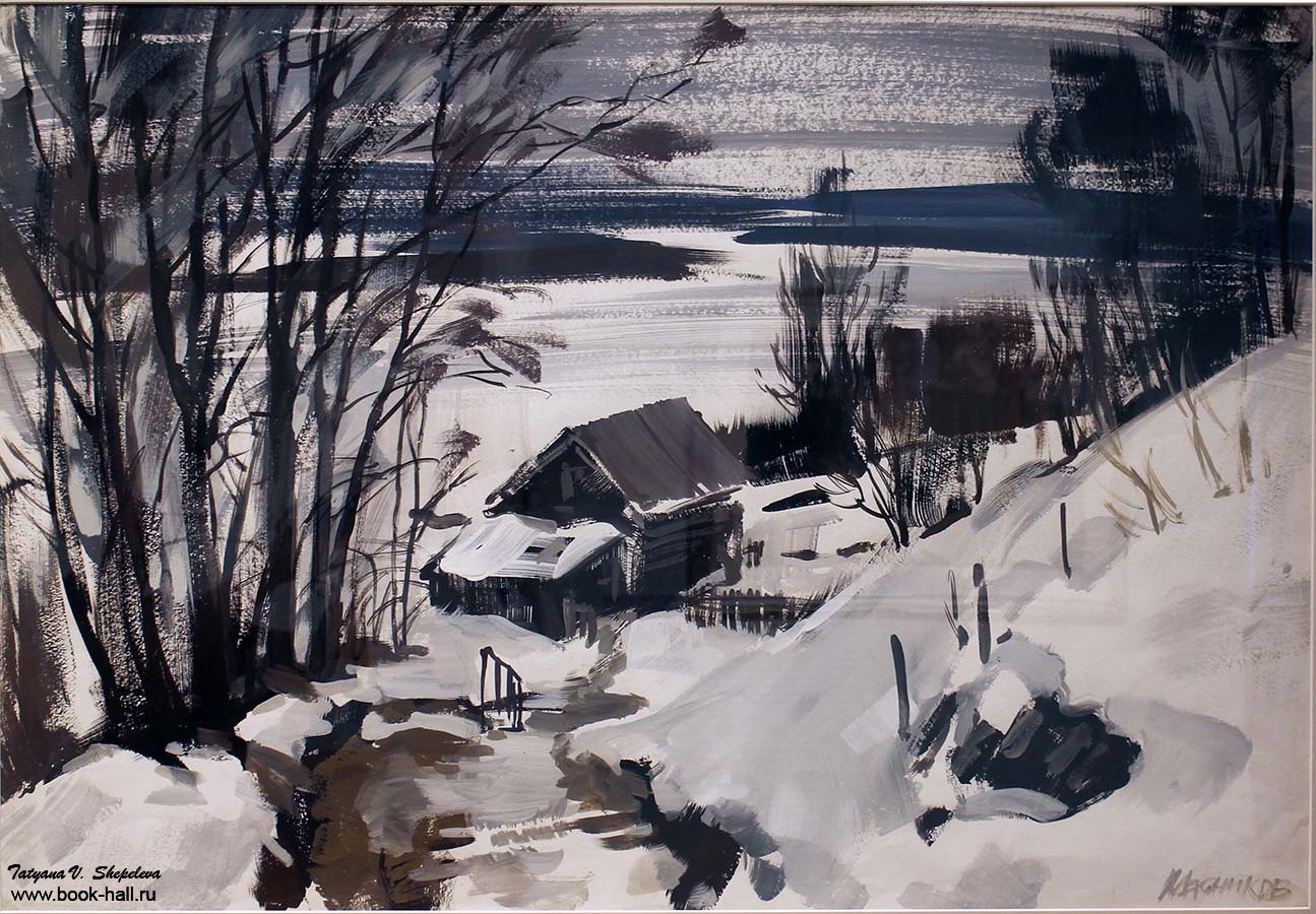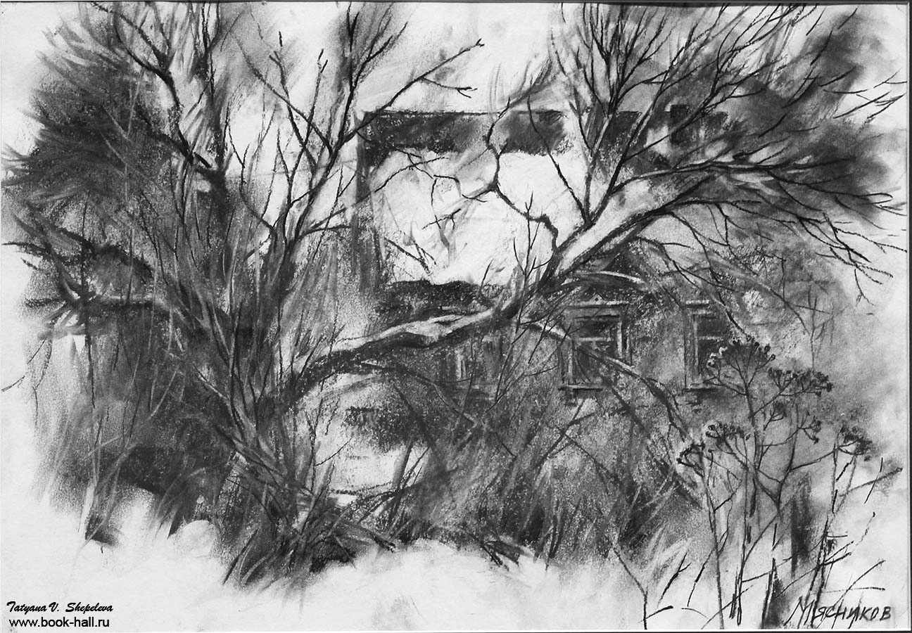 Работа с натуры определяет особенности художественного языка автора и позволяет ему добиться точности в передаче атмосферных явлений. Живя за городом, мастер не упускает возможности пленэра в любое время. По его признанию, работать в мороз комфортнее, чем в жару. Зима — одно из любимых времен года художника. Как истинный график, он восхищается ее контрастами. Зима Алексея Мясникова выразительна независимо от того, в какой технике она воплотилась на листе бумаги.